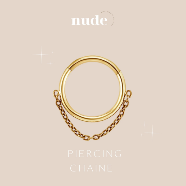Heret – Piercing anneau avec chaîne titane ASTM F136 doré 6,8,10 et 12mm – Hélix cartilage lobe piercing oreille